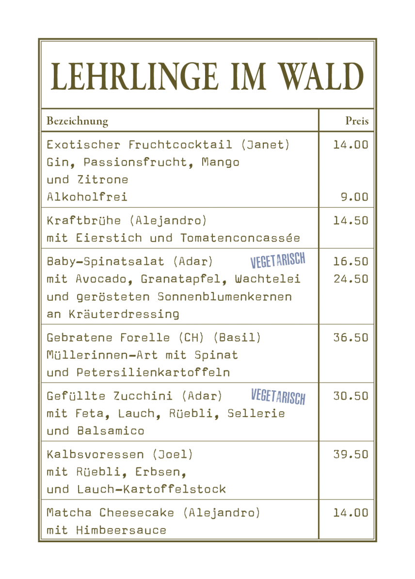 3. Lehrjahr : Janet Tombe, Alejandro Huber